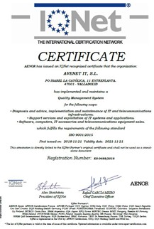 Avenet IT acaba de obtener la certificación de calidad ISO 9001, un sello que avala la metodología y el sistema de gestión que la empresa vallisoletana utilizaba ya en sus procesos estratégicos y operativos. “Este distintivo es muy importante para nosotros, porque nos permite desarrollar otro tipo de proyectos”, explica Vicente González del Pozo, responsable Desarrollo de Negocio de esta firma, que recientemente ha trasladado sus instalaciones a la calle Doctrinos de Valladolid.